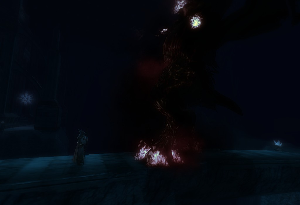 チュートリアルでは、ドワーフの襲撃を受けながらも美しい建物が華やかなエゼリオンも、今やすっかり廃墟。草木も枯れ、あちこち崩れ果てていて、非常に物悲しい…