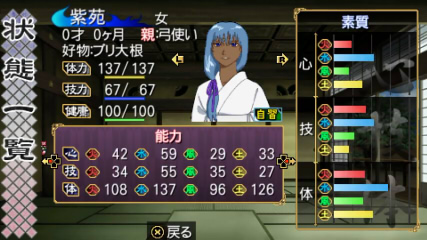 素質点は524点。体のゲージが全体的に高くて嬉しいなあ。他の人と比べても圧倒的にゲージが長いです。これは強くなりそうだ…!