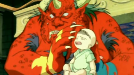 朱点童子は赤ん坊に2つの呪いをかけます。短命の呪いと種絶の呪いです。