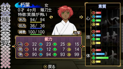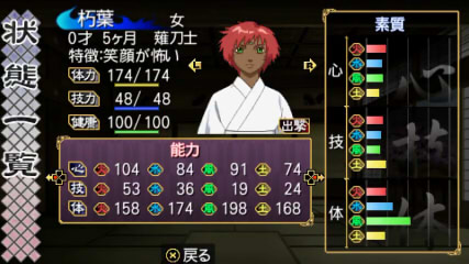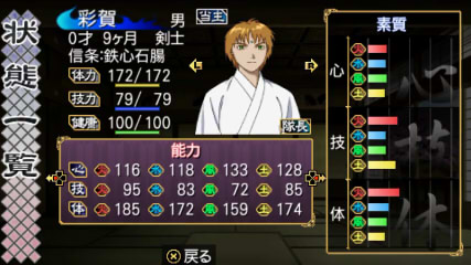 成長すると、心技体の能力が少しずつ上がります。この伸び率はそれぞれの年齢や素質に左右されます。若い間は体がめきめき成長し、大人になれば技が上がるという感じ。