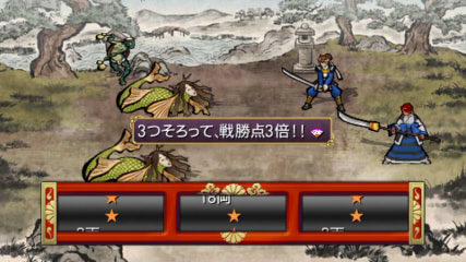 なかなか武具や巻物には止まらないのが憎いところ…ちなみにこの画面の★は揃わなければただの外れです。