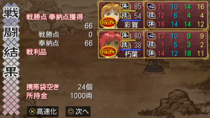 キャラは一定の戦勝点を得ると成長(レベルアップのようなもの)します。